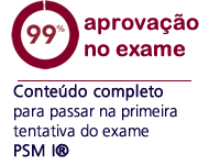 Você terá possibilidade de exercitar seu conhecimento para o exame PSM I como apoio de 400 questões comentadas distribuídas em 5 simulados.